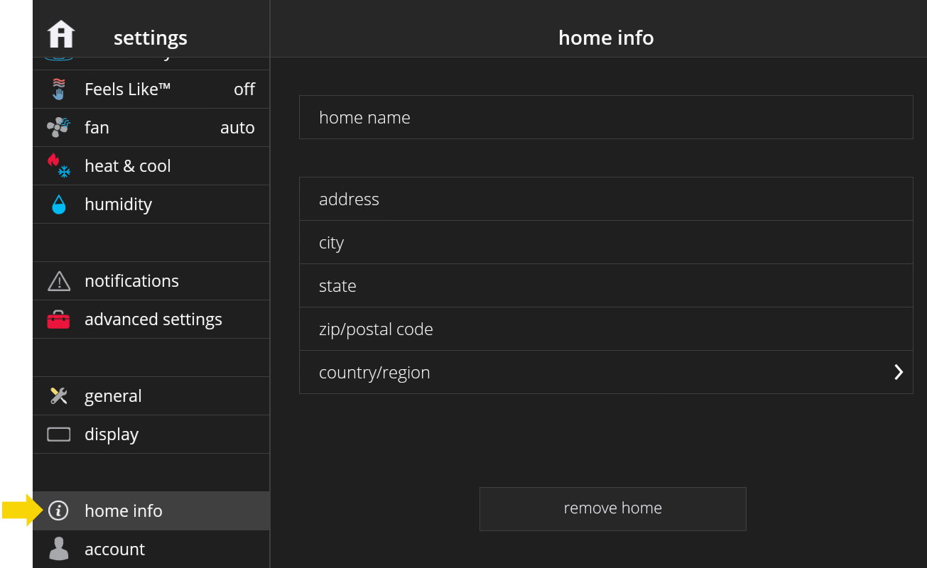 - 2. Via the iComfort®Home App: Navigate to the desired thermostat accessory. From top right menu go to Thermostat Settings > “Remove Thermostat”. This will remove your iComfort® accessory from your homekit home on all paired iOS devices.