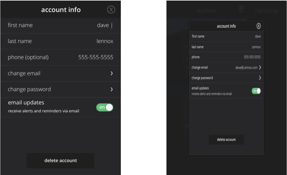 Alternatively, here is the menu button and settings option on the Lennox Home App: